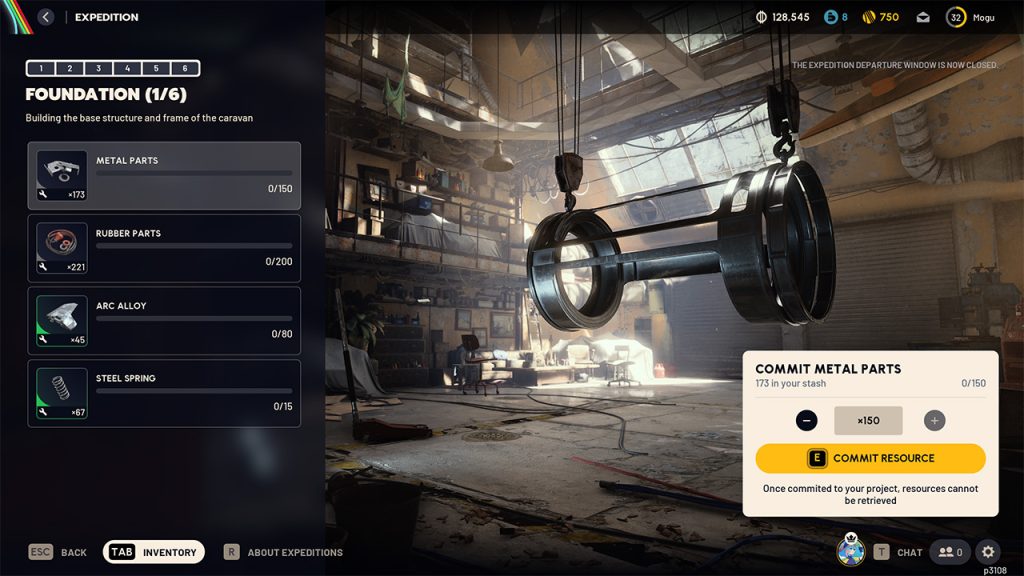 Building your Expedition caravan isn’t a weekend project. There are five stages, each requiring specific materials that you’ll need to extract with and donate. Once you commit items, they’re gone.