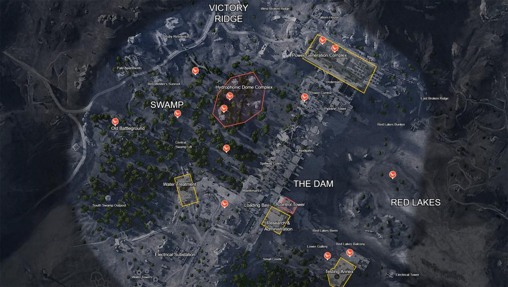Dam Battlegrounds: This is probably your best bet for hunting Rocketeers. There’s usually one stationed southeast of the Testing Annex near the Red Lake Elevator. The northwestern part of the map also tends to have a spawn. One is typically found near the North Complex Elevator, and another just south of the Hydroponic Dome Complex.